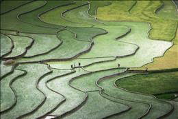 در نگاه اول شاید به نظر برسد که این عکس ها، شیشه های منقوش باستانی یا آثار یک نقاش فوق العاده ی امپرسیونیست است.اما واقعیت خیلی عجیب تر از این ها است: این ها تصاویری از مزارع واقعی برنج در چین است که از ارتفاع زیاد گرفته شده است. در طی سال منظره ی این مزارع به طرز قابل توجهی تغییر کرده است؛ در طول تابستان می توان از جوانههای تازه و سبز لذت برد، در حالی که پاییز، همین کوه ها را به زیبایی با رنگ طلایی می پوشاند. در هر صورت این مناظر از نمای چشم پرنده واقعا تاثیر گذارند.